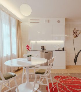 Our Boutique Apartments elevate your stay with unique and stylish features that distinguish them from our Standard and Superior units. While maintaining the practicality of a fully equipped kitchen and separate bathroom, these apartments offer high-end furnishings and can include design features like exposed brick walls and bespoke design elements, making every Boutique Apartment a unique and memorable experience.